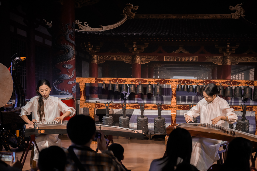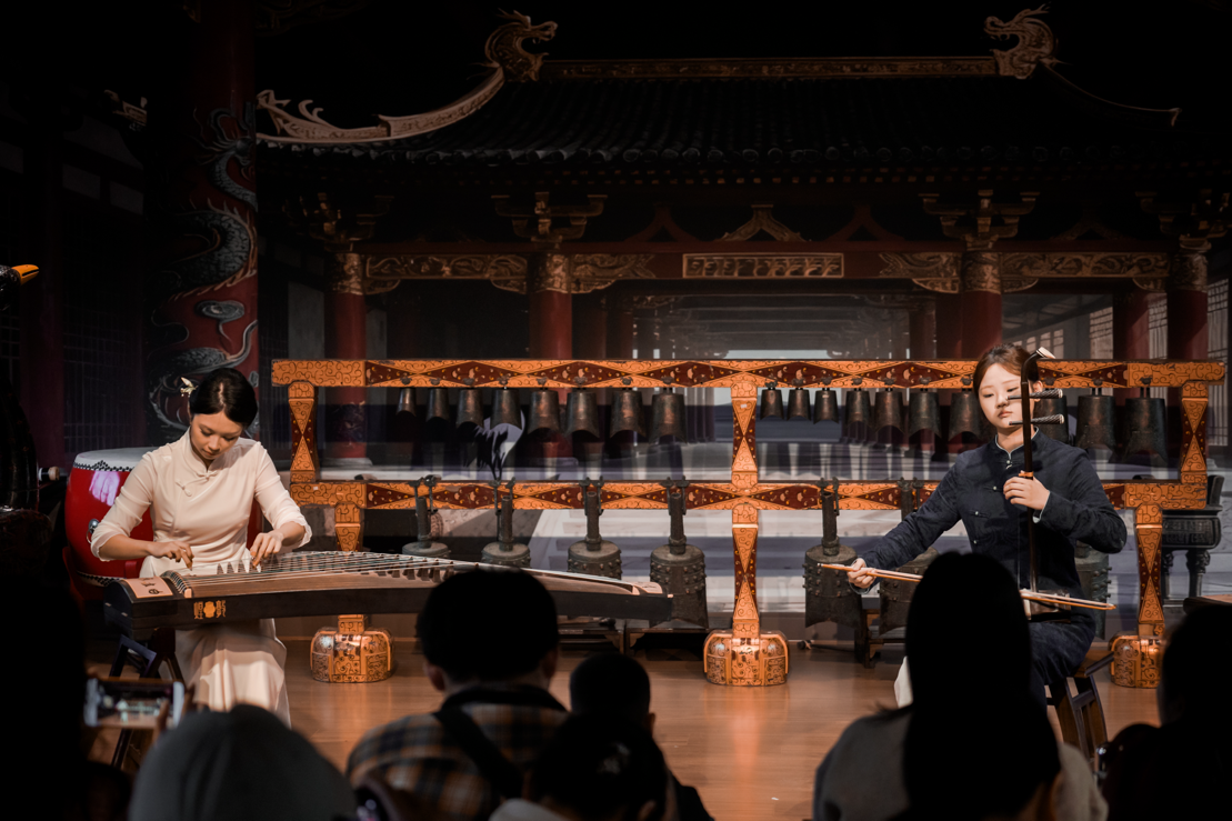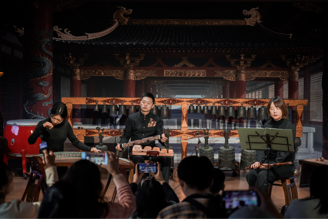 荊州博物館以“讓文物從展柜走向舞臺(tái)”為底色:編鐘廳的古雅空間成為演出主場,戰(zhàn)國漆器展柜與《紀(jì)南城·砥礪》的編磬聲共振,曾侯乙墓出土的羽調(diào)式音階融入樂曲創(chuàng)作,館內(nèi)藏有的楚文化脈絡(luò)更成了音樂會(huì)“楚墟新聲”板塊的核心靈感源。從章華臺(tái)到銅綠山,荊州博物館的考古資源,讓沉睡的遺址變成了旋律里的“楚魂載體”。
