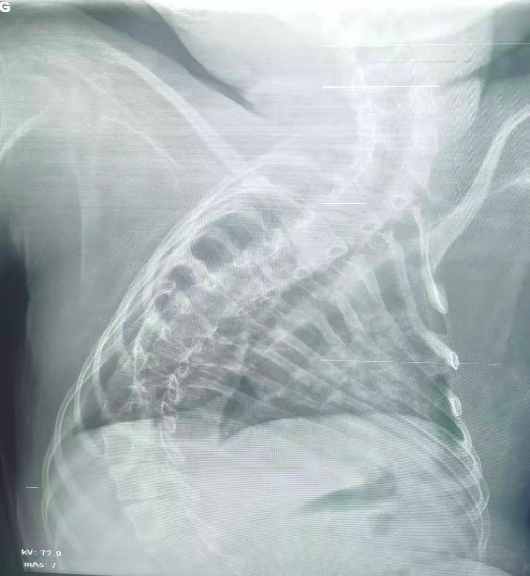 該患兒因患脊髓性肌萎縮癥長期臥床,呼吸肌已嚴(yán)重?zé)o力,自主呼吸微弱且?guī)缀鯁适Э人耘盘的芰?,此次并發(fā)支氣管肺炎后,肺部感染迅速加重,生命已然懸于一線。更棘手的是,嚴(yán)重的脊柱側(cè)彎使患兒胸廓畸形、氣道解剖結(jié)構(gòu)明顯移位,常規(guī)纖支鏡進(jìn)鏡路徑完全失效,扭曲狹窄的氣道如同縱橫交錯的“迷宮”,每一步操作都必須精準(zhǔn)到毫米級別。