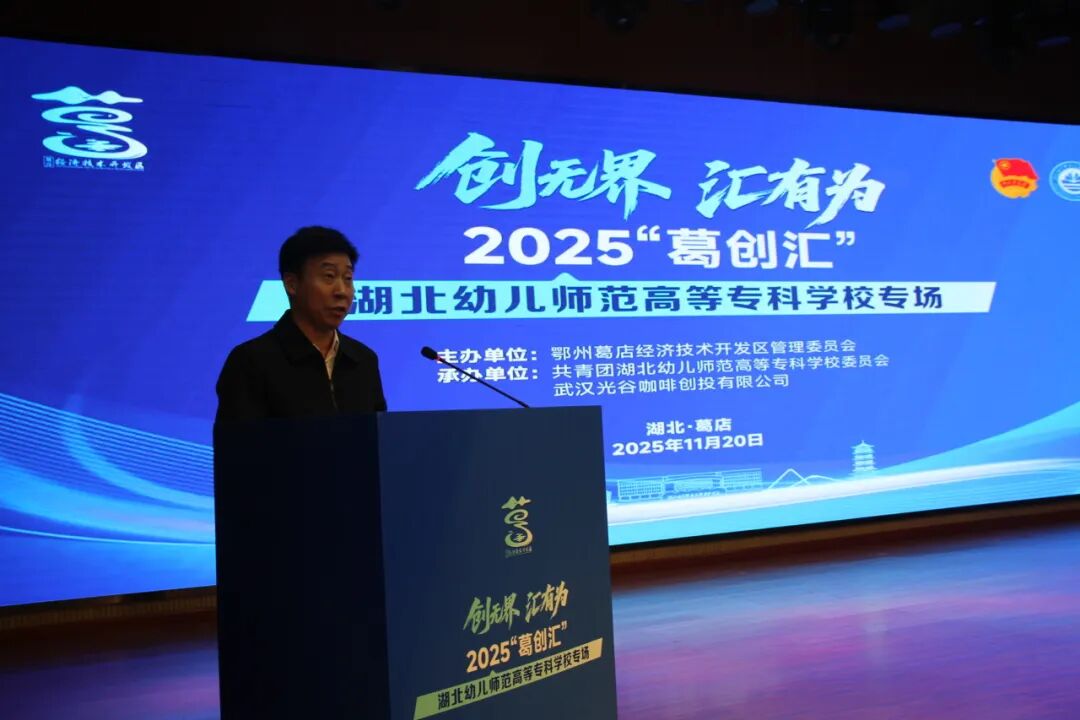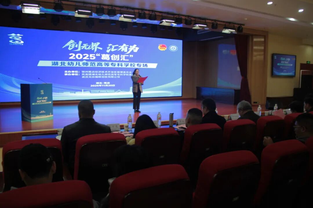 11月20日,由鄂州葛店經(jīng)濟(jì)技術(shù)開發(fā)區(qū)管理委員會(huì)主辦,共青團(tuán)湖北幼兒師范高等專科學(xué)校委員會(huì)、武漢光谷咖啡創(chuàng)投有限公司聯(lián)合承辦的2025“葛創(chuàng)匯”湖北幼兒師范高等??茖W(xué)校專場(chǎng)路演活動(dòng)在學(xué)校報(bào)告廳成功舉辦。