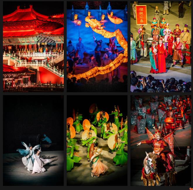 整場演出運用大量的科技手段制造出夢幻般的效果,將精心選擇的歷史畫面包含進去,把人們的記憶拉向1000多年前的那個輝煌朝代。