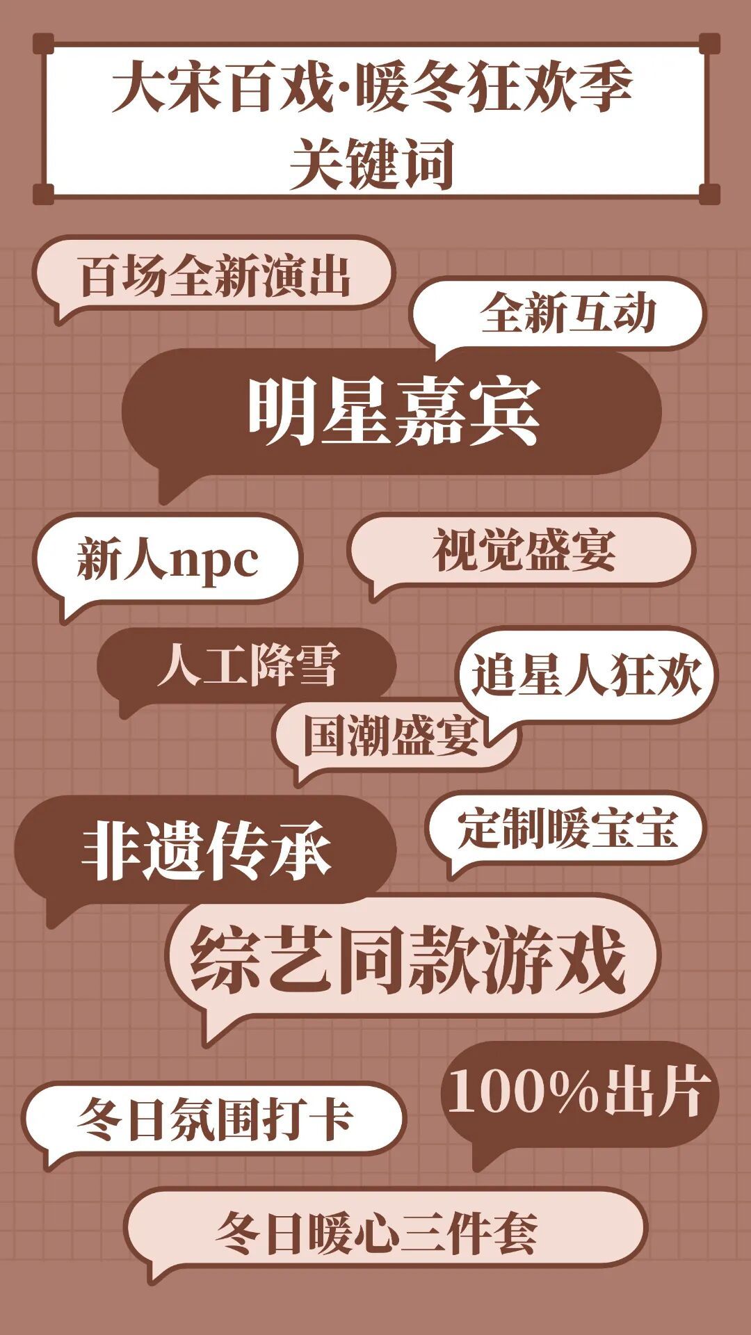 購《大宋·東京夢華》演出票,三天免費無限次游園,大宋百戲·暖冬狂歡季,免費參與!問題來了,全新主題活動,大宋百戲·暖冬狂歡季會有什么?