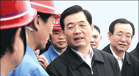 中共中央總書記胡錦濤慰問施工代表