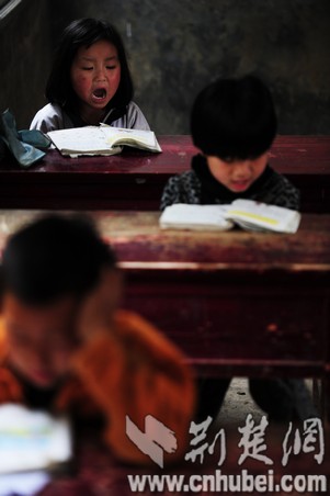 “白日依山盡,黃河入海流……”盡管普通話發(fā)音還不標(biāo)準(zhǔn),孩子們卻異常認(rèn)真,一字一句地大聲朗讀。
