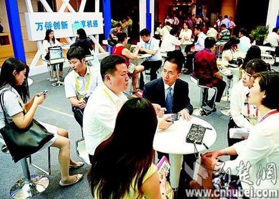 圖為:上圖:與會嘉賓認(rèn)真洽談。